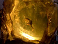 El ambar con los mosquitos dentro, clave del ADN fósil. Spielberg ideo la presencia de un simpático Mr. ADN. |