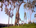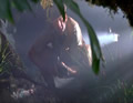 ... Hacia el sur, elevándose por encima de las palmeras, Grant divisó un tronco solitario totalmente desprovisto de hojas: un tocón grande y curvado. Entonces, el tocón se movió y se volvió para hacer frente a los recien llegados. Grant se dio cuenta de que no era un tronco, sino el cuello garboso, encorbado, de un ser enorme, que se alzaba hasta una altura de quince metros.