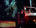 Impresionante persecución. En el retrovisor se puede ver como se acerca el terrible Rex. Esta escena se parodia en "Toy Story 2". |